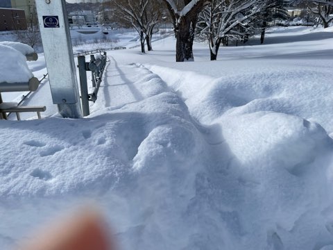 写真では分かり難いけれど、一歩足を踏み入れると、太ももまで雪に埋もれるので立ち入れません。